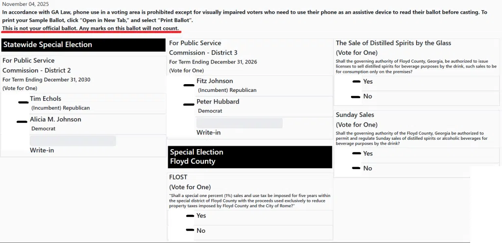 Sample ballots and polling details are available on the Georgia Secretary of State’s My Voter Page at mvp.sos.ga.gov.